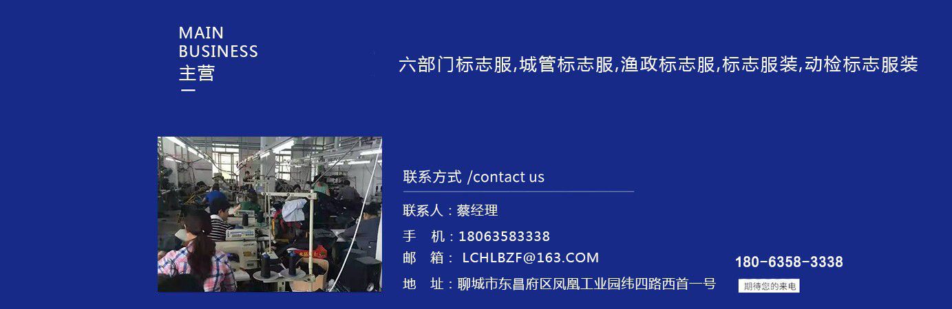 聊城市領(lǐng)祥服裝有限公司主主要生產(chǎn)六部門標(biāo)志服,城管標(biāo)志服,漁政標(biāo)志服,標(biāo)志服裝,動檢標(biāo)志服裝,標(biāo)志服裝廠等產(chǎn)品,款式新穎,做工精細(xì),可根據(jù)用戶要求批量定做。公司成立以來,已為各行業(yè)數(shù)千家企業(yè)、集團(tuán)承制了職業(yè)制服。 多年來,我公司本著“質(zhì)優(yōu)高效,守約重譽(yù)”的經(jīng)營理念給廣大新老客戶提供質(zhì)優(yōu)價廉的產(chǎn)品和售后服務(wù)。憑借良好的信譽(yù),雄厚的實(shí)力,優(yōu)質(zhì)的產(chǎn)品,低廉的價格愿與新老客戶真誠協(xié)作,業(yè)務(wù)遍布全國各地,是山東優(yōu)秀的標(biāo)志服裝廠,歡迎新老客戶參觀考察! 公司生產(chǎn)的職業(yè)服飾均以標(biāo)準(zhǔn)的質(zhì)量,頂尖精湛的技術(shù)為基礎(chǔ),以客戶的滿意為根本,全程采用電腦輔助設(shè)計(jì)制服,成衣、服飾配件(領(lǐng)帶,領(lǐng)結(jié),紐扣,帽子,企業(yè)標(biāo)志等)均可定織定染,普遍采用進(jìn)口或合資優(yōu)質(zhì)輔料,尺碼按身高和體型劃分或量體定制。每一道工序,每一個生產(chǎn)環(huán)節(jié)精雕細(xì)琢,充分體現(xiàn)了以質(zhì)量求生存,以信譽(yù)求發(fā)展的理念。并以準(zhǔn)確的市場定位,先進(jìn)的營銷理念,贏得廣大客戶的信賴支持! 公司宗旨:“團(tuán)結(jié)、服務(wù)、創(chuàng)新”。公司方針:“專業(yè)創(chuàng)造輝煌,質(zhì)量保證未來,用心換得人心”。熱誠歡迎業(yè)界同仁來公司洽談!...